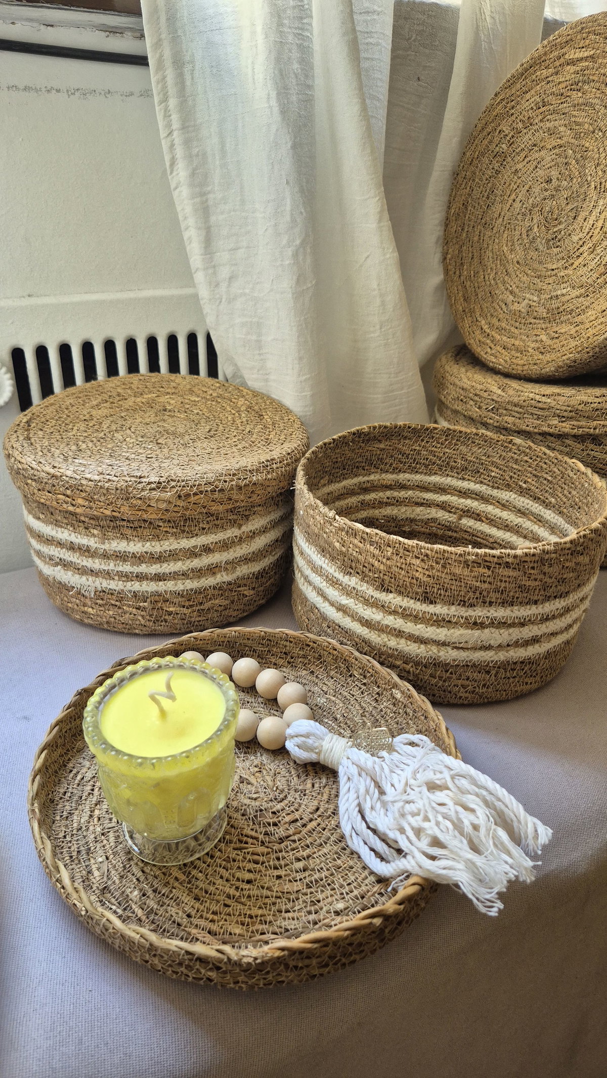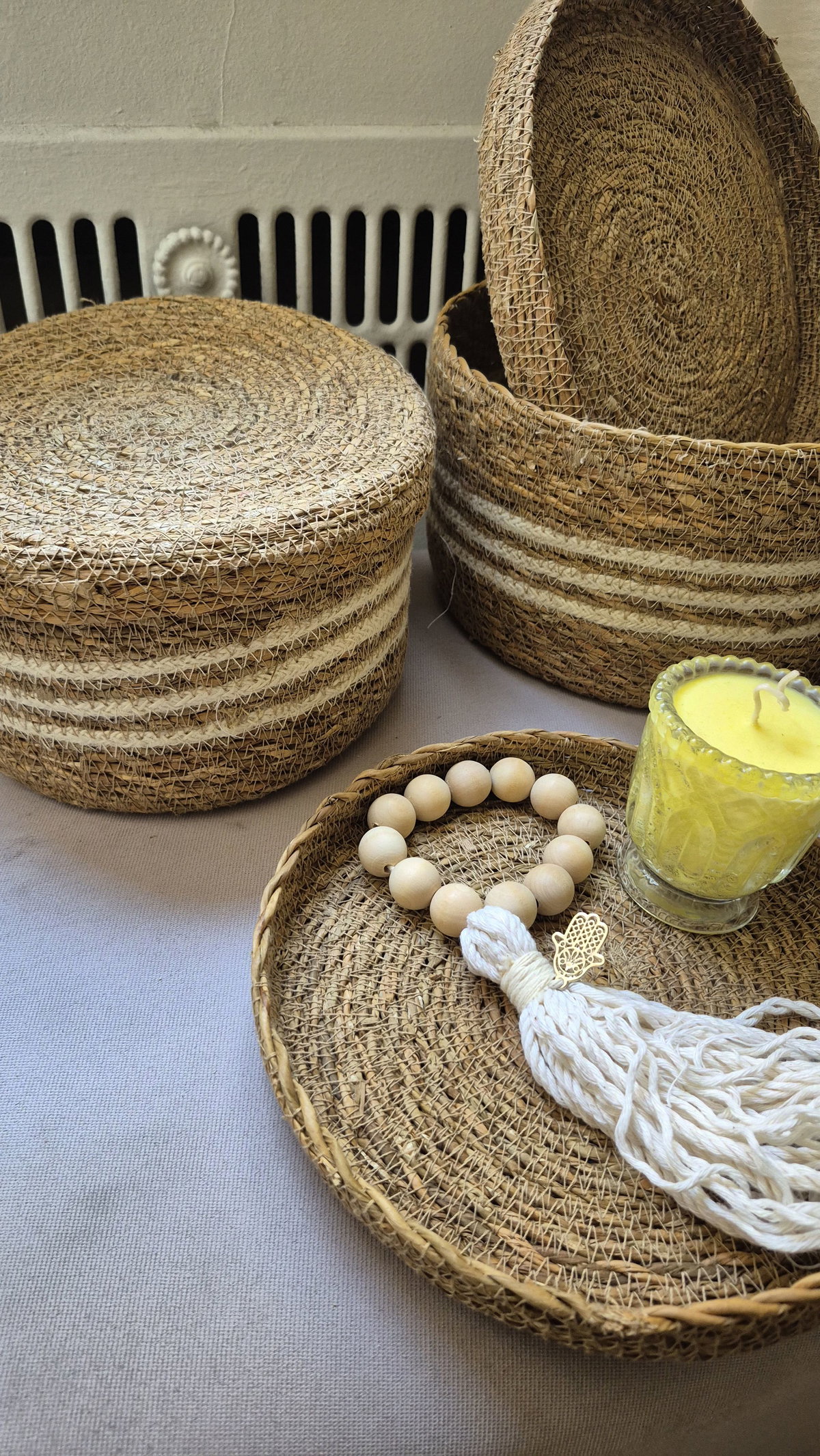 Nuestra cesta decorativa también puede usarse como bandeja, convirtiéndose en un detalle simple pero lleno de calidez para tu hogar.