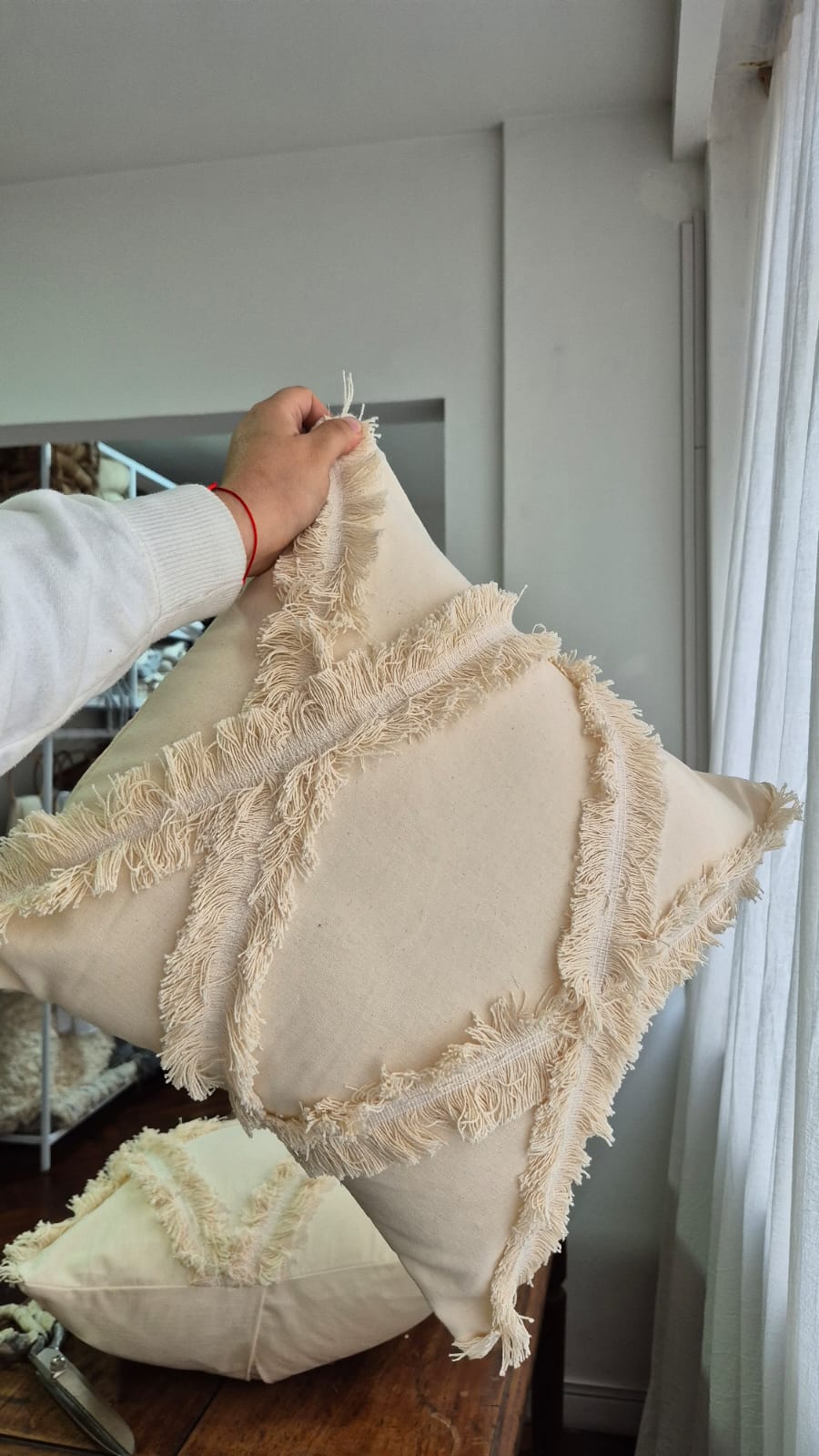 Suave, versátil y con mucho encanto. Nuestro almohadón con flecos está confeccionado de manera artesanal con telas de excelente calidad, ideal para sumar textura y calidez a tu espacio. Perfecto para combinar con otros tonos o estilos, aporta ese toque boho y relajado que hace que cada rincón se sienta más acogedor.