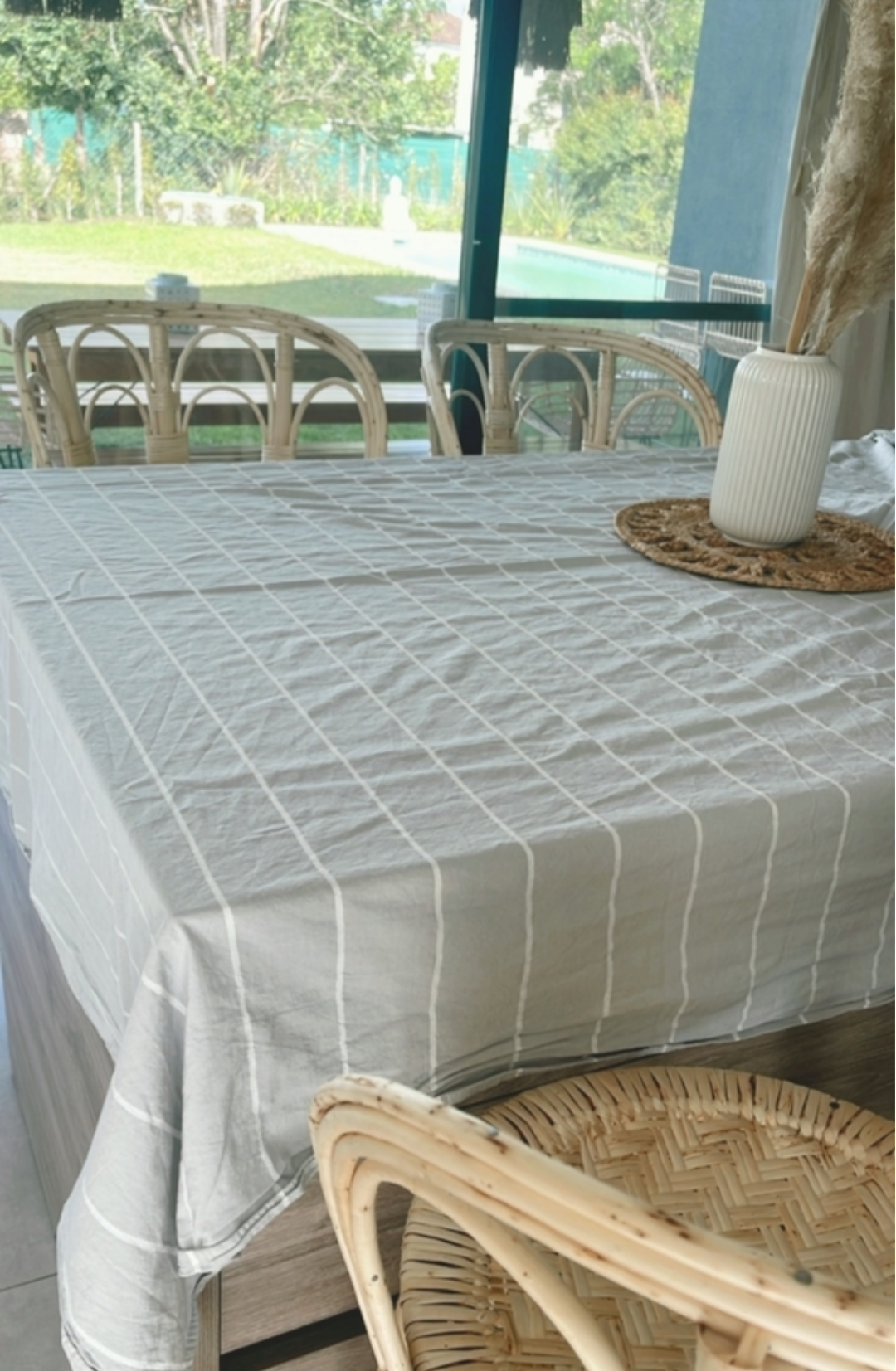 Mantel gris con líneas blancas200x150