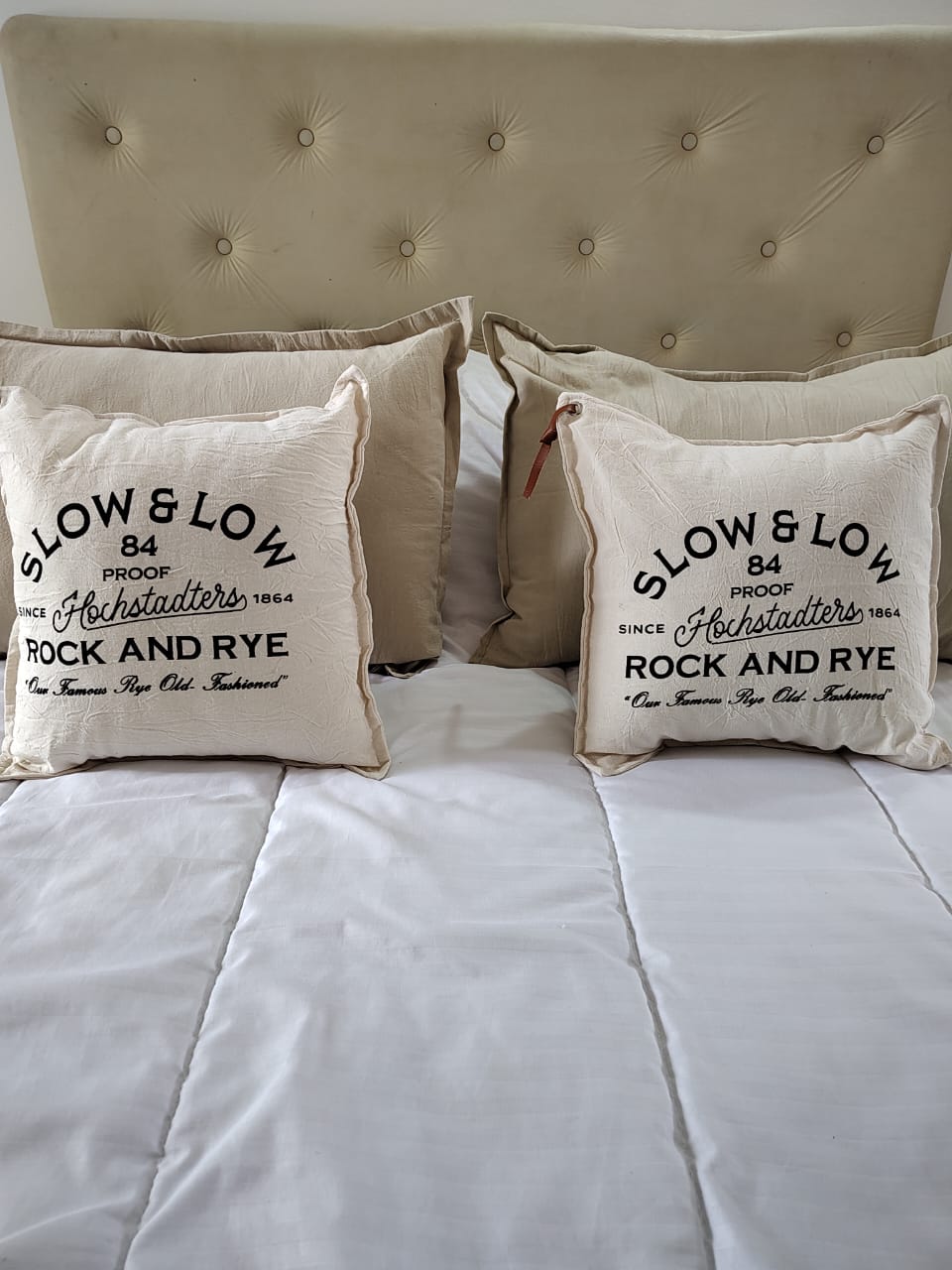 Almohadones confeccionados en tussor 100% algodón con solapas cruzadas atrás para sacar el relleno, el mismo tiene funda de friselina y relleno de vellón siliconado.